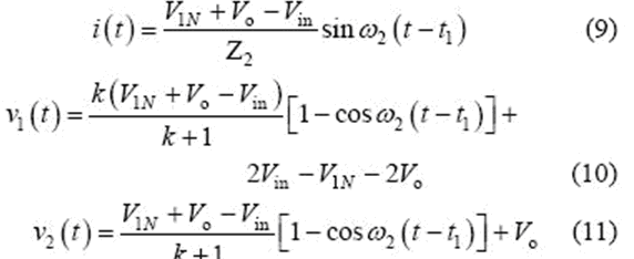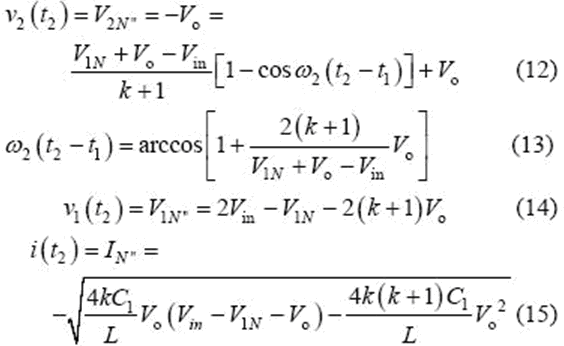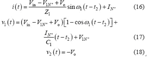 當v2(t2)= -Vo 時,該模式結束,可得到如下表達式