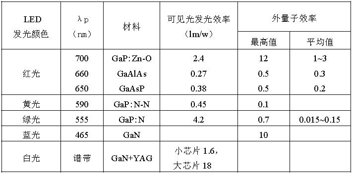 以下列出幾種常見(jiàn)LED 流明效率(可見(jiàn)光發(fā)光效率):