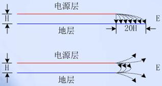 2.電源平面應(yīng)相對(duì)于其相鄰地平面內(nèi)縮(建議值5H~20H)。電源平面相對(duì)于其回流地平面內(nèi)縮可以有效抑制“邊緣輻射”問題,如圖2所示。