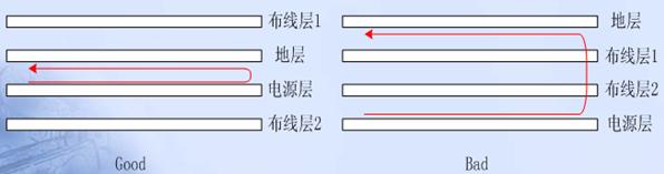 3.相鄰平面層應(yīng)避免其投影平面重疊。因?yàn)橥队爸丿B時(shí),層與層之間的耦合電容會(huì)導(dǎo)致各層之間的噪聲互相耦合。
