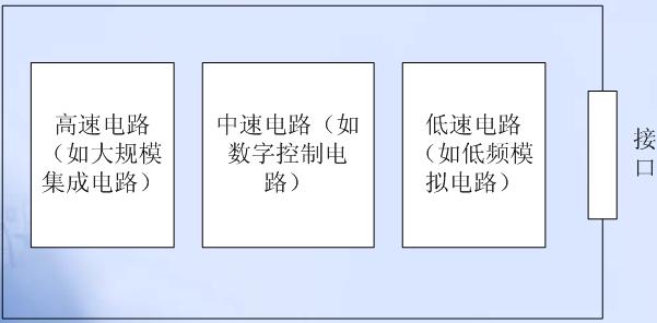 2.多種模塊電路在同一PCB上放置時(shí),數(shù)字電路與模擬電路、高速與低速電路應(yīng)分開布局,以避免數(shù)字電路、模擬電路、高速電路以及低速電路之間的互相干擾。另外,當(dāng)線路板上同時(shí)存在高、中、低速電路時(shí),為了避免高頻電路噪聲通過接口向外輻射,應(yīng)該遵從圖7中的布局原則。