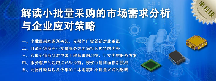 一直以來,對于那些需求旺盛、技術成熟、生產相對穩定的產品來說,大批量采購是降低成本、提高效率和縮短交貨周期的有效途徑。而對于某些特殊的、目標客戶相對局限或固定投資產品(如工業設備, 專用器材等),或某些處于新技術、新設計推廣期的產品, 由于其市場需求量相對較小,大批量采購原材料無疑會使庫存增加,資金占用及風險加大等問題。這時最有效的方式是降低采購批量,按需采購。然而,由于大部分供貨商都有最小包裝及最小訂貨量的要求,降低采購批量,按需采購變得十分困難。尤其是那些規模較小的企業,更是對小批量采購深感頭疼。那么對于元器件廠家來說,他們應該如何去根據企業的發展特色,去適應這個市場,并針對當前市場的發展趨勢,提出自己的小批量采購服務策略。