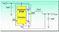 TPS6220x系列降壓轉(zhuǎn)換器具有內(nèi)部環(huán)路補(bǔ)償功能。因此,必須選擇支持內(nèi)部補(bǔ)償功能的外部LC濾波器。對于此類器件而言,內(nèi)部補(bǔ)償最適合16kHz的LC轉(zhuǎn)角頻率(corner frequency),即10uH電感器與10uF輸出電容器。根據(jù)一般經(jīng)驗(yàn)法則,在選用不同輸出濾波器時,L*C乘積不應(yīng)當(dāng)大范圍變動。在選擇更小的電感器或電容器值時,會造成轉(zhuǎn)角頻率增加至更高頻率,因此這一點(diǎn)尤為重要。