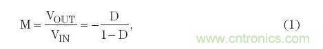 CCM模式下的反向降壓-升壓轉換器的電壓轉換率可表示為: