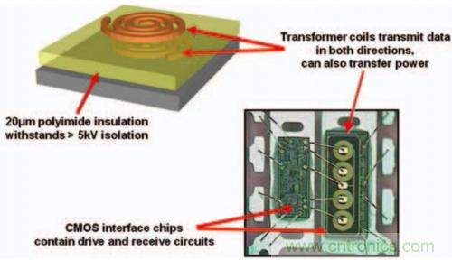 圖3. 基于變壓器的數(shù)字隔離器的結構