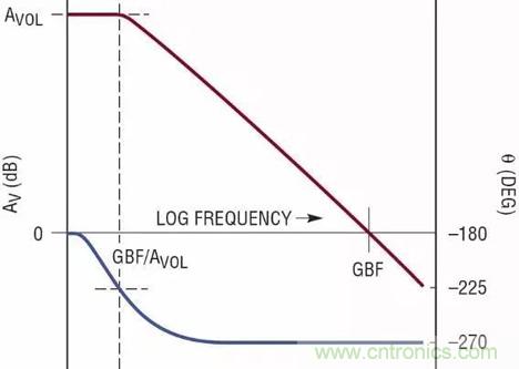 圖1c:理想化的運算放大器頻率響應(yīng)