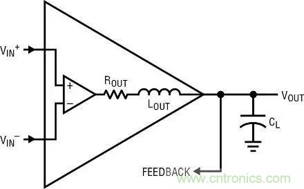 此外,任何放大器都有 20nH 至 70nH 的電生電感,尤其是雙極型器件。器件的有限 Ft 將輸出晶體管的寄生基極電阻變成電感。危害是,Lout 與 CL 可能相互作用,形成一個串聯(lián)諧振電路,那么同樣的問題又來了,如果環(huán)路中沒有更大的相位滯后,串聯(lián)諧振電路的阻抗就可能降至 Rout 無法驅(qū)動的水平,從而可能產(chǎn)生振蕩。例如,設(shè)定 Lout = 60nH 和 CL = 50pF。諧振頻率