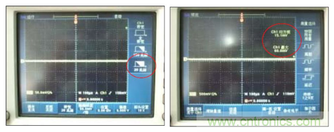 (3)調(diào)試示波器屏幕顯示測量值〈均方根〉、〈最大值〉二個測量項目。如下:
