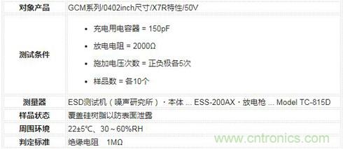 展示了多層陶瓷電容器(GCM系列)的ESD耐性參考數據。