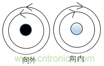 (2)當有兩條彼此靠近且平行的導線,如下圖所示,其中一個導體的電流向外流出,另一個導體的電流向內(nèi)流入,如果流過這兩根導線的電流分別是信號電流和它的回流電流,那么這兩個電流是大小相等方向相反的,所以它們的磁場也是大小相等,而方向是相反的,因此能相互抵消。