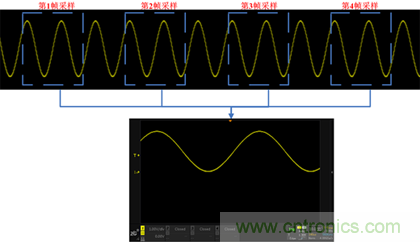 示波器的觸發條件的一個很關鍵的因素是觸發電平,觸發電平大多數情況下是用一根直流電平作為基準,當信號的電壓超過該直流電平的時刻作為采樣波形的起始點。由于起始采樣的位置是有規律的,因此多次采樣的波形進行疊加后看上去還是一個穩定的波形。如圖3所示: