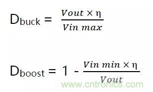 所以要計算降壓模式的最小占空比和升壓模式的最大占空比。這些占空比很重要,因為在這些占空比下,可以知道轉換器工作范圍的極限。占空比總是正數且小于1。
