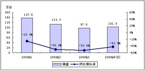 - 賽迪顧問預(yù)計,2008年第四季度,中國MP3/PMP市場銷量為134.0萬臺