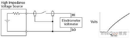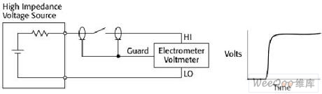 圖4a.高阻抗電壓源到靜電計的開關