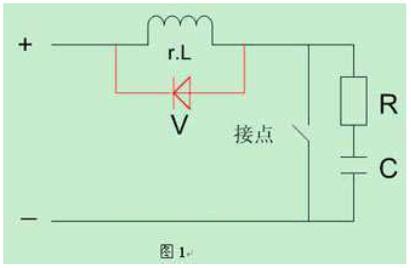 由于繼電器接點通斷的電流較小,接點間不會出現電弧,但會出現“火花放電”,這是由于接點電路中存在電感,則在斷開時電感上會出現過電壓,它與電源電壓一起加在接點間隙上,使剛分開一點距離的接點間隙擊穿而放電。由于能量所限,只會產生火花放電,接點間存在的電容與電感中能量的交替轉換,使火花放電時隱時現,而成為一種高頻信號,再者火花放電對接點也會造成損傷,而會降低使用壽命,因此必須設法消除,實用的消火花電路有兩種,如圖1所示。一.其基本作用原理是,使電感中的能量不通過接點而通過rc;二.在斷開時經過二極管v在負載r.l上消耗掉。在應用中選擇一種就行了。但要注意的是,rc參數要選擇適當,參數主要靠實驗來決定,通常電容c可按負載電流1a/1微法選擇。使用二極管時其正負極性應連接正確。