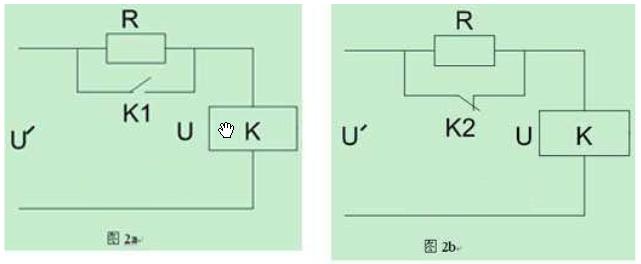 所謂返回系數kf是反映吸力特性與反力特性配合程度的一個參數,也即表征繼電器動作值與釋放值的差異性。不同用途的繼電器,往往要求不同的返回系數,當繼電器的返回系數不能滿足使用要求時,可采取圖2所示的電路來改進返回系數。圖2a為減少kf的電路,而圖2b則是增大kf的電路。圖2中的r取值應適當,也就是說串入r后,必須使加至繼電器線圈的電壓仍要大于其動作電壓(圖2a)或保持電壓(圖2b)。