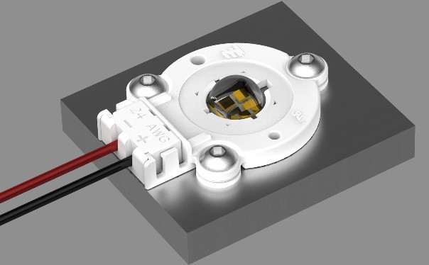 此外,該款產品通過利用一個定位器(一個塑料框架,在安裝插座之前,首先將其放在散熱片上,將LED正確定位到位),使散熱器上的麗訊LED定位簡化。定位之后,僅需3顆市場上銷售的#4或M3螺絲釘,即可將插座迅速固定到散熱片上。