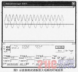 在小信號諧振放大中,電路的輸入信號中除了所需要的信號外還有不需要的信號,它們的頻譜往往不同,所以用選頻的方法,選取需要的頻率分量,抑制不需要的頻率分量。另外,其中有用信號的幅度往往也很小,處理這種信號必須具有選頻和放大雙重功能。小信號諧振放大器電路中晶體管集電極負(fù)載是LC并聯(lián)諧振電路,其阻抗是隨頻率而變化的,回路諧振頻率f0上的阻抗為純電阻并且是最大的,因此諧振放大器在負(fù)載回路的諧振頻率上具有最大的電壓放大增益,稍離開此諧振中心頻率,電壓增益就會迅速減小。在分析中采用仿真軟件來測試諧振放大電路的時域的輸入輸出波形。分析測試電路如圖2所示。