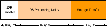 雖然USB速度快了十倍(從480Mbps 到 5Gbps),但是真正的吞吐量將遠(yuǎn)遠(yuǎn)低于理論值,因?yàn)閁SB延時(shí)(X)比操作系統(tǒng)處理延遲(Y)和存儲(chǔ)傳輸延遲(Z)都小得多,其相對于總延時(shí)可以忽略 不計(jì)。Z延時(shí)可以通過選擇更好的存儲(chǔ)設(shè)備來改進(jìn),但是Y延時(shí),則需要通過更有效地系統(tǒng)設(shè)計(jì)來管理。