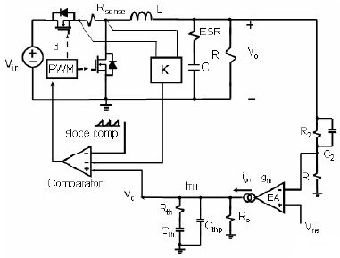 谷點電流模式具有寬輸入電壓、低占空比、易檢測電流和快速負載響應。在占空比小于 50%時需要斜坡補償。負載響應快速的原因在于谷點電流模式從當前的脈沖周期響應,而峰值電流模式從下一個脈沖周期響應。當輸入和輸出電壓變化時,若高端 MOSFET 的導通的時間固定不變化,那么系統(tǒng)將工作在變頻模式,不利于電感的優(yōu)化工作。因此在 PWM 內(nèi)部需要一個前饋電路,使高端 MOSFET 的導通時間隨輸入電壓成反比的變化,隨輸出電壓成正比的變化,從而維持在輸入電壓變化和負載變化時,變換器近似的工作于定頻方式。