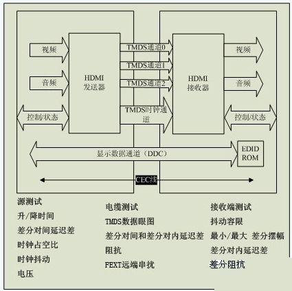 圖1:HDMI最小化傳輸差分信號(TMDS)的邏輯連接以及CTS規范所要求的核心測試。