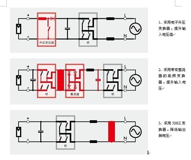 與標準逆變器的基本設計不同,直接并網逆變器有很多方法來調整或提升輸入電壓范圍。常用的逆變器技術方案與結構都各不相同: