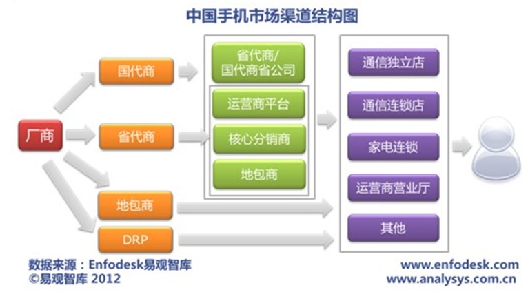 根據易觀智庫分析,目前我國手機市場渠道開始進入轉型期。首先一個比較明顯的變化是手機廠商直供模式的加強,渠道的扁平化趨勢進一步加劇。比較明顯的一個例子是三星手機的渠道改革,從2010年12月起,三星手機全面推行了直供模式,經過一年多的發展,三星對手機渠道的把控能力不斷得到了提升。