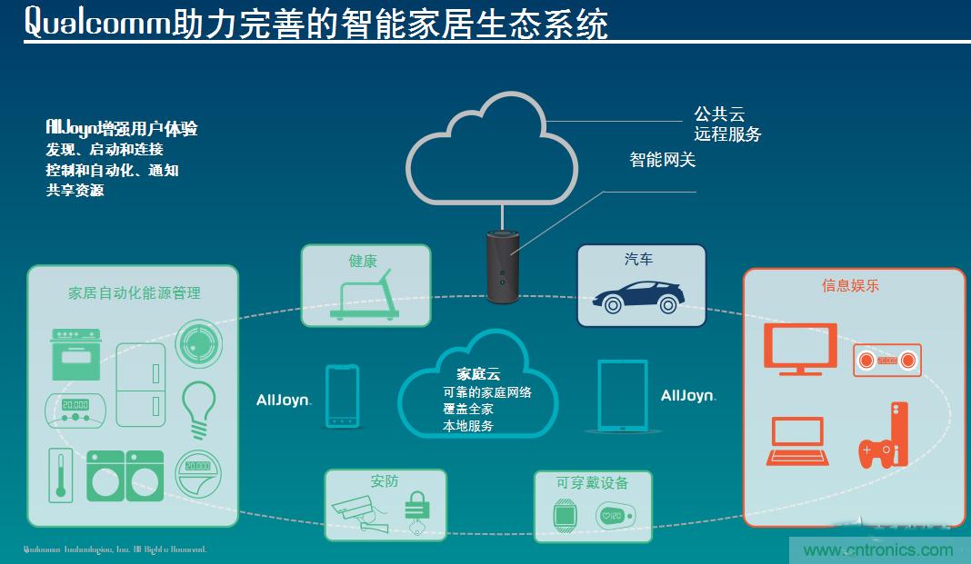 Qualcomm創(chuàng)銳訊物聯(lián)網(wǎng)市場(chǎng)經(jīng)理貝曉珊女士在 “IoE互聯(lián)家庭解決方案概述”主題演講中談到,盡管不同的分析機(jī)構(gòu)給出了不同的數(shù)據(jù),但結(jié)論是統(tǒng)一的,即物聯(lián)網(wǎng)市場(chǎng)規(guī)模的巨大化。而高通創(chuàng)銳訊將致力于端到端的IOE解決方案,助力完善智能家居生態(tài)系統(tǒng)。會(huì)議上貝曉珊詳細(xì)介紹了兩款WIFI芯片產(chǎn)品QCA4004和QCA4531以及AllJoyn SDK軟件平臺(tái)。