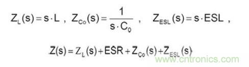 等效電感阻抗包含ZESR、ZESL、ZCo,計算方式如下所示: