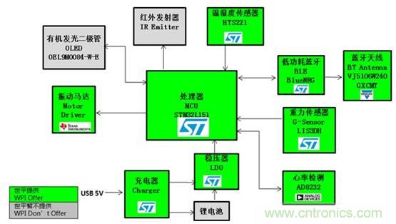 圖示6-大聯大世平基于ST STM32L151 單導聯心率監護手表功能框圖