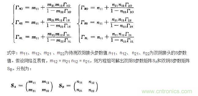 首先計算出雙陰雙陽級聯后的S參數 。級聯二端口網絡的S參數不能直接計算出,需將S參數轉換為T參數,求出級聯值[TAB] - [TA][TB],再將級 聯后的[TAB]轉換為[SAB]。將雙陽雙陰級聯(如圖6所示)。