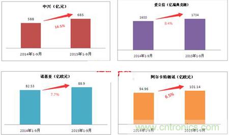 圖表3:其他四大設備商2015年前三季度營收情況