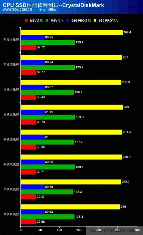 CPU對SSD 4K讀寫性能的影響,一方面因為目前的硬件設計和操作系統無法很好的利用CPU的多線程特性來發掘出SSD的潛能,另一方面4K小文件的讀寫涉及到龐大的數據取址、讀取和寫入的操作,對于CPU自然提出了更高的要求,即使是SSD也只是提供了更快的數據通道形式,但是數據任務量并不會改變,所以未來要想獲得更好的數據存儲體驗,除了不斷提升SSD性能,也請不要忽視了CPU的性能以及多線程的開發。