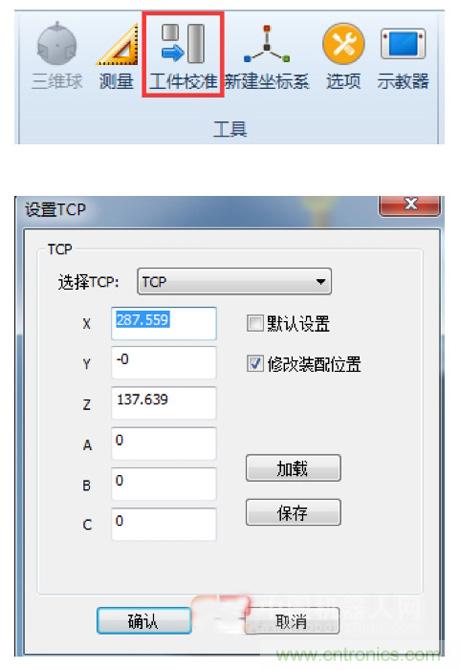 工具的TCP進(jìn)行設(shè)置,完成此步驟后零件和工具的位置就已經(jīng)和實際的位置保持一致了。