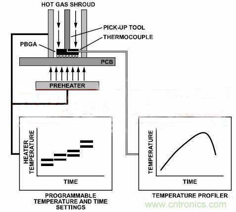 將PBGA器件裝配到PCB上之后,若發現缺陷,應當返修以移除不良器件,并換上工作正常的器件。移除器件之前,應加熱不良器件直至焊接接頭液化,以便于從電路板上移除不良器件。