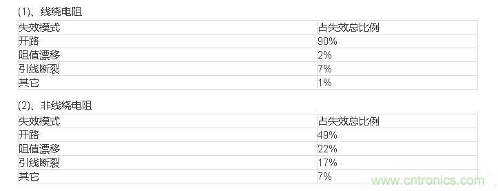 1) 開路:主要失效機理為電阻膜燒毀或大面積脫落,基體斷裂,引線帽與電阻體脫落。