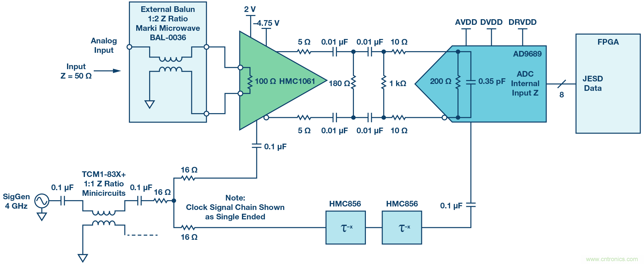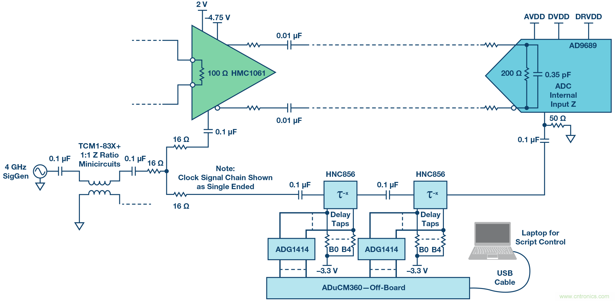 圖5. THA和ADC前端網絡及信號鏈。