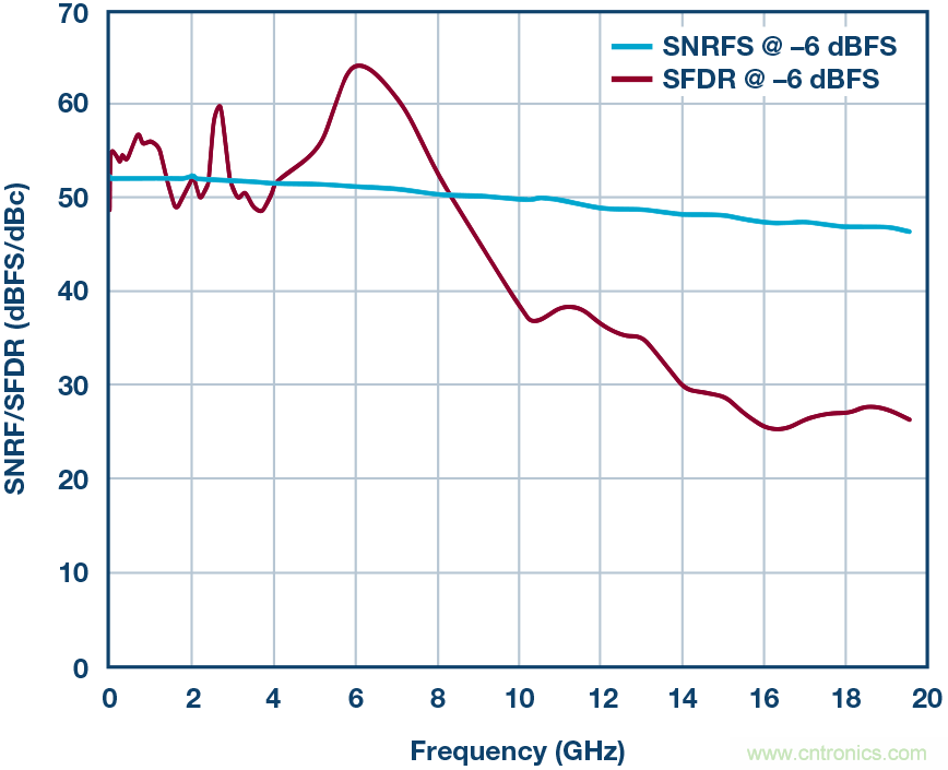 圖6. –6 dBFS時的SNRFS/SFDR性能結果。