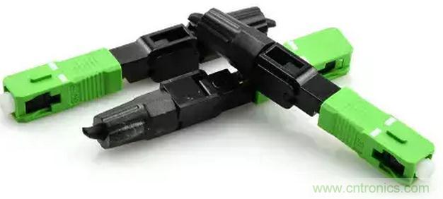 光纖快速連接器/冷接子是一種極具創(chuàng)新性的現(xiàn)場端接連接器,它內部包含工廠預裝的光纖、預研拋的陶瓷插芯以及一個機械接續(xù)機制,端接時只需將引入光纖或室內光纖插入到該機械接續(xù)機制即可,無需借助其他工具,端接過程只要2分鐘左右,大大節(jié)省了安裝時間。目前市場上的光纖快速連接器/冷接子可以端接直徑為250 μm、900 μm、2.0 mm和3.0 mm的單模光纖和多模光纖。光纖快速連接器/冷接子可直接應用于樓道、入戶線纜等環(huán)境,無需多余保護,基本能達到原線強度,降低了布線要求,因此大大提高了FTTH光纖布線的速度,是實現(xiàn)全光網絡的重要保障。