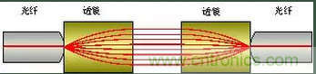 非接觸式光纖連接器(以擴束光纖連接器為例)的工作原理如下圖所示,光纖出射的光經透鏡擴展光斑后,以近似平行的高斯光束出射,然后進入另一個透鏡并耦合進光纖中,實現光斑面積成百上千倍的增加以及非接觸的連接,可極大地提高光纖連接器在臟污、振動等惡劣環境下連接的可靠性。
