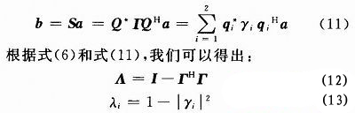 則Q矩陣的第i列qi就稱為天線陣列的正交模式。|ai|2表示第i個端口的入射功率;|mi|2表示第i個正交模式的激發(fā)功率。由于Q的幺正性,有|a|2=|m|2,這就保證了入射總功率等于激發(fā)起的正交模總功率。而λi則反應(yīng)了正交模式的輻射效率。