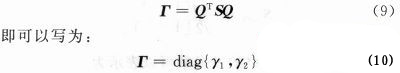 式中:A=diag{λ1,λ2},而Q是幺正的(即QQH=I)。根據(jù)厄米特矩陣的性質(zhì),兩個正交值λ1和λ2都是實(shí)數(shù),并且小于等于1。將式(5)代入式(4)得: