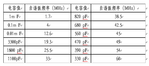 根據(jù)LC電路串聯(lián)諧振的原理,諧振點(diǎn)不僅與電感有關(guān),還與電容值有關(guān),電容越大,諧振點(diǎn)越低。許多人認(rèn)為電容器的容值越大,濾波效果越好,這是一種誤解。電容越大對(duì)低頻干擾的旁路效果雖然好,但是由于電容在較低的頻率發(fā)生了諧振,阻抗開(kāi)始隨頻率的升高而增加,因此對(duì)高頻噪聲的旁路效果變差。表1是不同容量瓷片電容器的自諧振頻率,電容的引線(xiàn)長(zhǎng)度是1.6mm(你使用的電容的引線(xiàn)有這么短嗎?)。