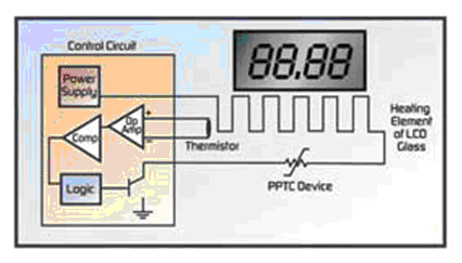 - 安裝獨立于加熱元件控制器的PPTC器件,保護(hù)LCD和加熱器的控制電路