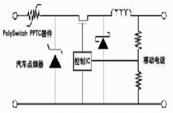 (2)轉換器出現故障。如果轉換器或起控制作用的集成電路出現故障,造成短路,這時PPTC保護器件進入高阻抗狀態,保護汽車線路及熔斷絲。