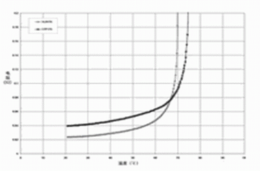 合此式,得出從Ta 到 TSw 動作時間。此式的重要性在于一已知的起始阻抗低切換溫度聚合物PTC組件,在故障期間提供更快速的動作時間,見圖2。當組件接近切換溫度時,該組件的阻抗增加,因此所產生的熱更具效率;切換溫度較低,因此在較短時間內就能達到所需的溫度變化。