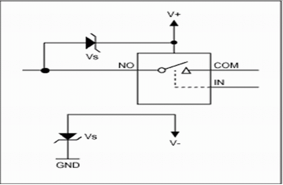 在現有設計中,大多數系統工作于標準電源電壓(單極性3.3V或5V,或雙極性±3.3V或±5V),這個電壓通常也是板上的最高電壓。在實際使用中,電路板的輸入端子可能會暴露于比電源電壓更高的電壓之下,同時,電路板電源被切斷后,輸入端子上的電壓有可能仍然存在。受這種過壓影響的第一個元件常常是多路復用器或開關,這就要求為開關元件和下游電路提供適當的保護。