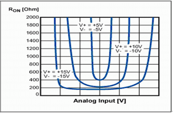 圖4. 早期故障保護開關的導通電阻隨信號電壓的變化