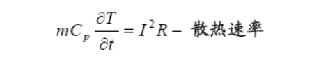 其中m為熔斷器的質量,Cp為比熱或熱容系數,T為溫度,t為時間,為升溫速率,I2R為電轉化為熱能的速率。這只是一個簡化的式子,因為熔斷器并非由單一的材料組成,而且材料的物性亦是溫度的函數。