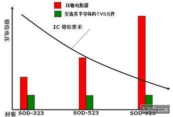 圖6:多層壓敏電阻(MLV)與安森美半導體的TVS硅芯片技術發(fā)展趨勢對比